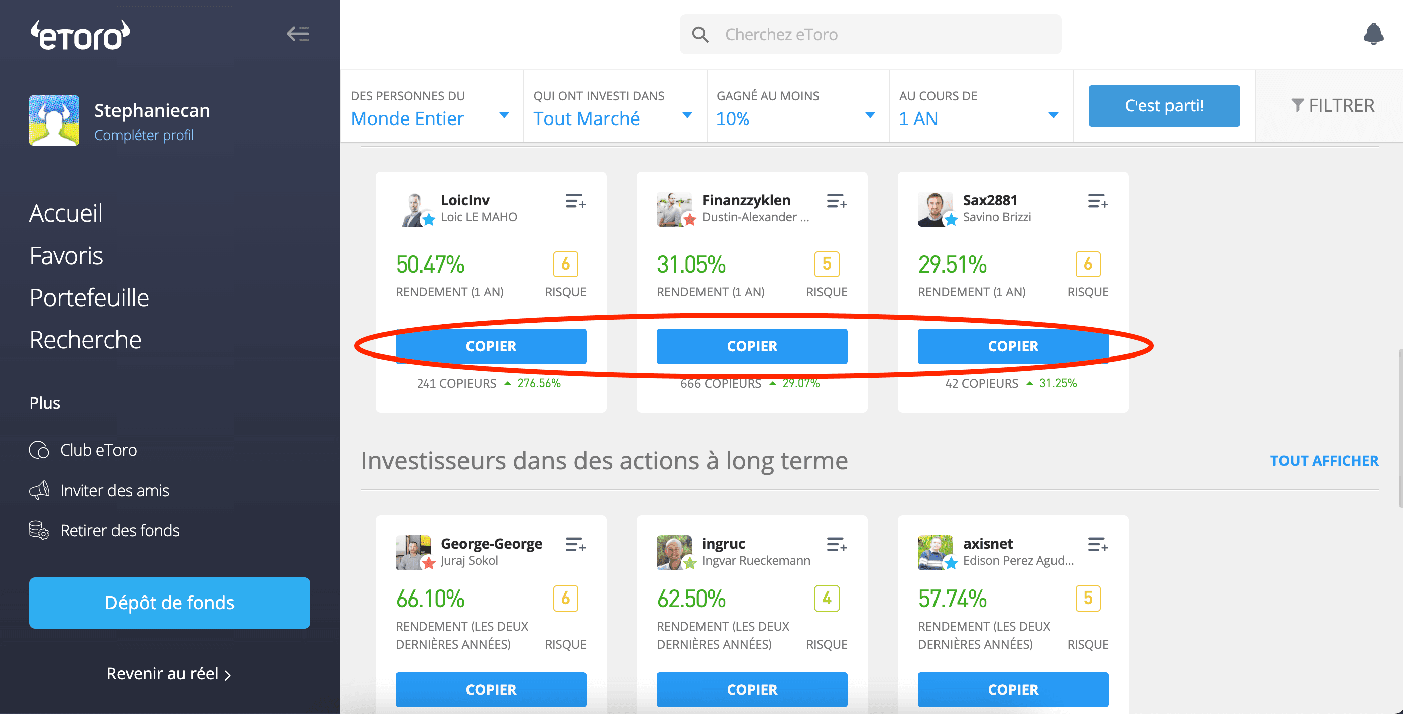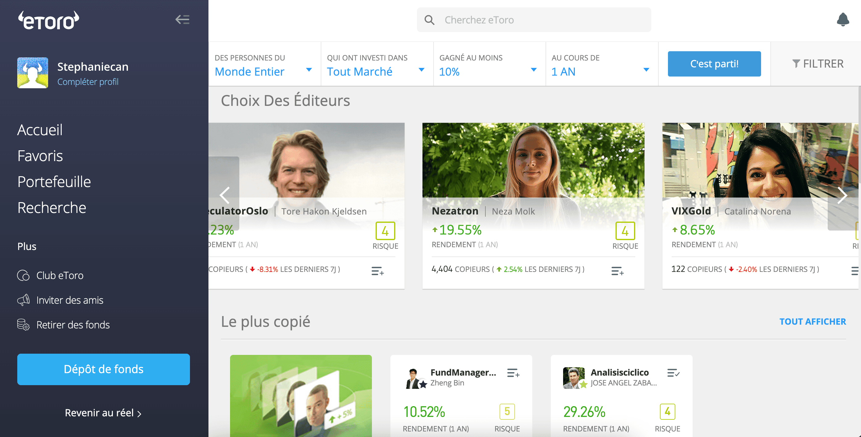 Copy trading pour copier les stratégies d'investissement des meilleurs traders de eToro