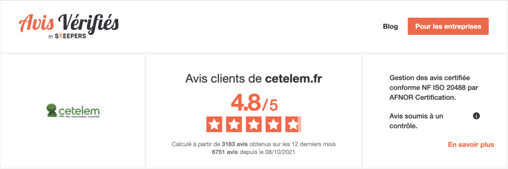 Cetelem fait partie de nos plus anciens partenaires. Il est l’un des plus choisis par nos utilisateurs. C’est un organisme reconnu de longue date, et comme ses clients, nous lui faisons confiance.