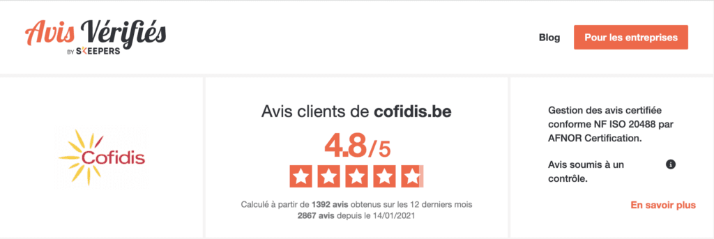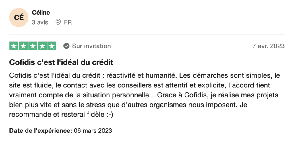 De plus, Cofidis appartient à Crédit Mutuelle et est très bien noté sur les sites d’avis clients conformes à la législation.